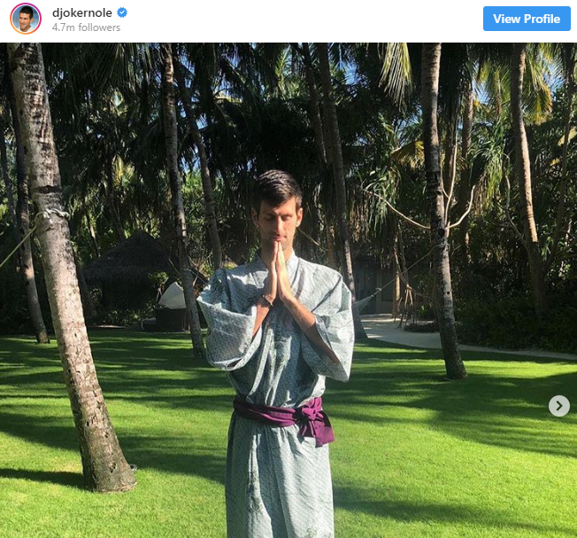 Naime, Nole se na svom Instagram nalogu pohvalio fotografijama sa odmora, na kojima je odjeven u samurajske odore. Takođe, na ovoj društvenoj mreži se mogu vidjeti i snimci na kojima on izvodi karate poteze.