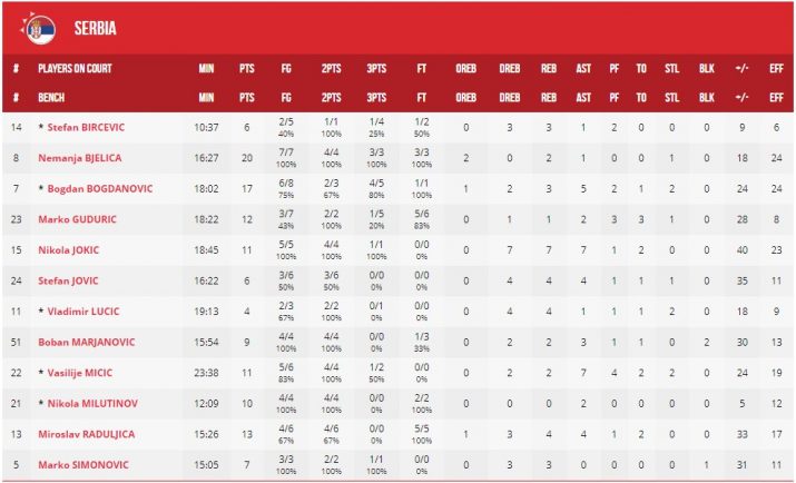 Srbija je meč završila sa nestvarnih 37 asistencija, što je rekord svjetskih prvenstava od kada se mjeri ta statistika 1994. godine.