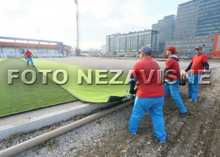 Iako je Stojan Malbašić, direktor FK Borac, najavio da će postavljanje trave na pomoćni teren početi tek sutra zeleni tepih se danas počeo postavljati iza Sjeverne tribine Gradskog stadiona.