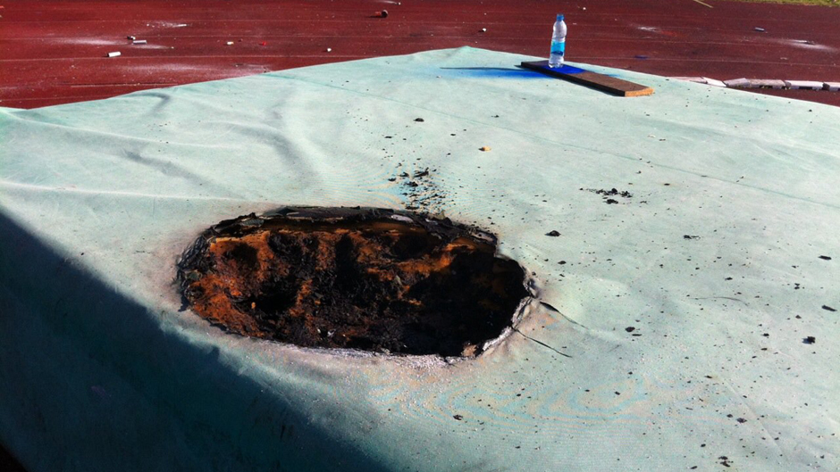 Ovaj put je stradali i određena propratna oprema na Gradskom stadionu, pa je tako od plamena baklje izgorjela jedna od strunjača za skok u vis, koju koriste banjalučki atletičari.