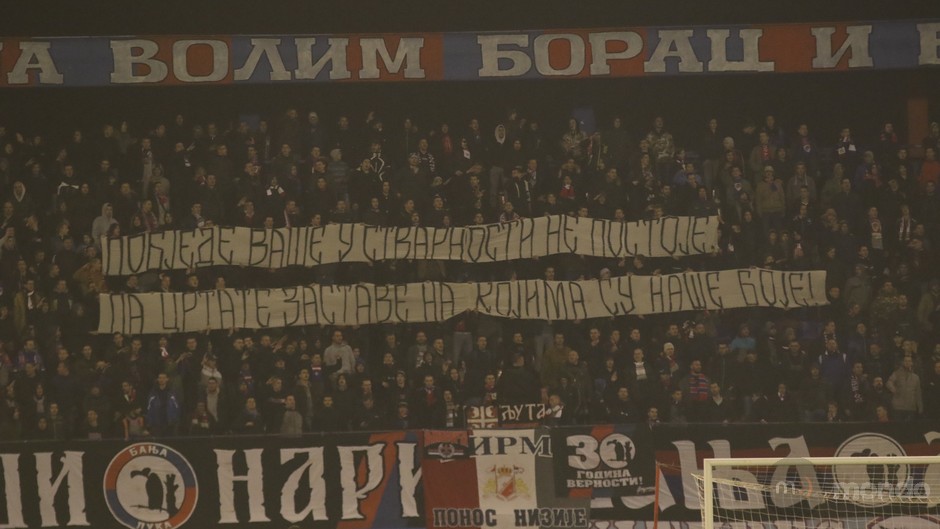 “Crveno-plavi” su poraženi 0:1 pred blizu 7.000 gledalaca, ali zbivanja na terenu ostala su u sjeni onoga što se dešavalo na tribinama – najvatrenije pristalice Borca, popularni “Lešinari”, proslavili su 30. rođendan.