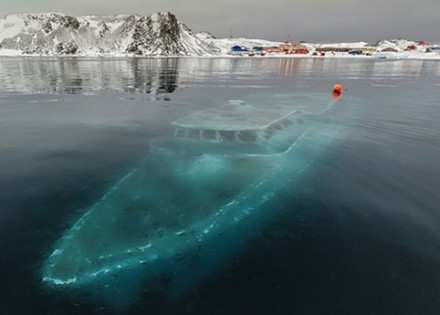 Ovaj jezivi brod je “Mar Sem Fim”, brazilska jahta koja je potonula u blizini uvale Ardli na Antarktiku. Brazilska ekipa željela je da snimi dokumentarac, ali jaki vjetrovi i uzburkano more natjerali su ekipu da napusti brod. Voda koja je prelivala brod se zamrzla zbog čega se trup broda raspukao i brod potonuo.