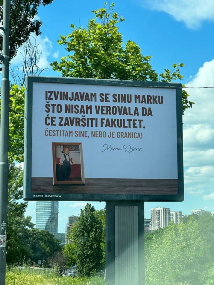 “Izvinjavam se sinu Marku što nisam vjerovala da će završiti fakultet. Čestitam sine, nebo je granica. Mama Dijana” – glasi poruka.