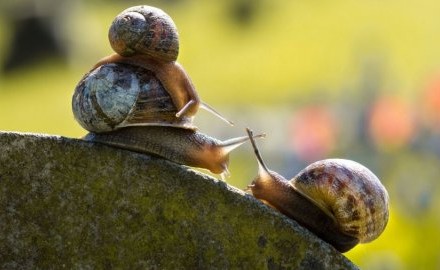 Da li možete da zamislite porodicu sporiju od ove? Beba puž je odlučila da se odmori od “brzog” života, pa se popela tati na kućicu, a zajedno sa mama pužom su se krenuli na dug put sa jednog kamena.