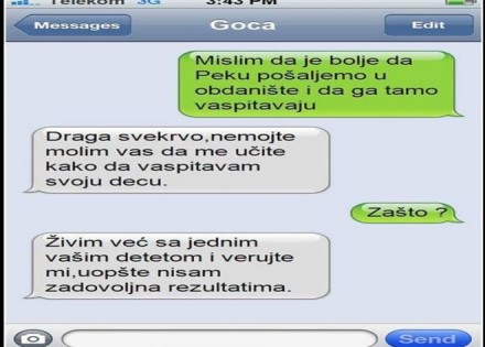 Zanimljive fotografije sms poruka svakodnevno nas uveseljavaju na virtualnim društvenim mrežama, većinom one ljubavne. No ovaj put u pitanju su zanimljive poruke između svekrve i snahe i njihovoj djeci.