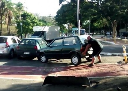 Na Jutjub videu koji je postavio korisnik Joe Loreto vidi se kako jedan Brazilac golim rukama pomjera auto sa biciklističke staze, a zatim nastavlja da vozi kao da se ništa nije dogodilo.
