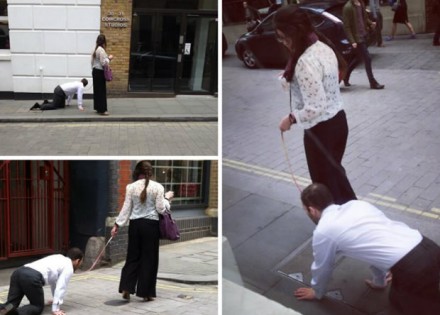 Na ulicama Londona jutros je zabilježen neuobičajen prizor. Na kraju povodca jedne žene danas se nije nalazio pas, kao što to obično biva, nego muškarac. U odijelu i na sve četiri spremno je slijedio nepoznatu ženu dok je ona prilično nonšalantno ispijala kafu povremeno spuštajući pogled prema njemu.