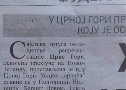 Naime, u članku piše “Svjetska titula reprezentacije Crne Gore osvojena prekjuče na Novom Zelandu, proslavljena je u Crnoj Gori“.