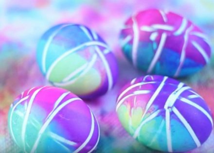 Šaranje jaja gumicom jedna je od jednostavnijih tehnika, a ne postoji dijete kojem se ovakve raznobojne šare neće dopasti.