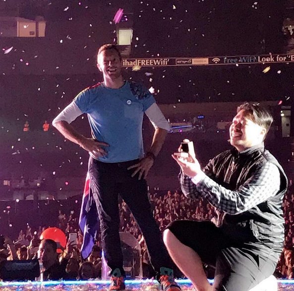 On je zaustavio izvođenje pjesme “A Sky Full Of Stars” u krcatom Etihad stadionu u Melburnu kako bi napravio prostor romantičnom muškarcu da zaprosi ljubav svog života na bini.