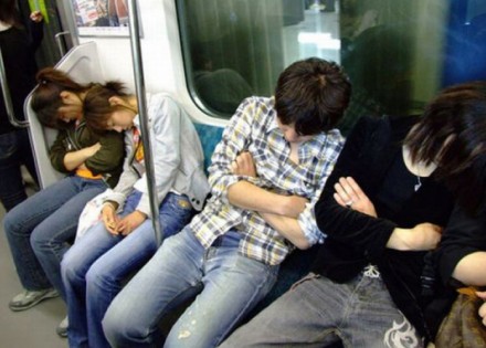 Ako neko u Japanu zaspi sa svojom glavom na vašem ramenu, to je uobičajena praksa koja se toleriše. Ljudi imaju vrlo duga putovanja od kuće do posla i rade strašno dugo, pa mnogi od njih padaju u san čim se nakon posla dočepaju voza koji ih vozi kući.
