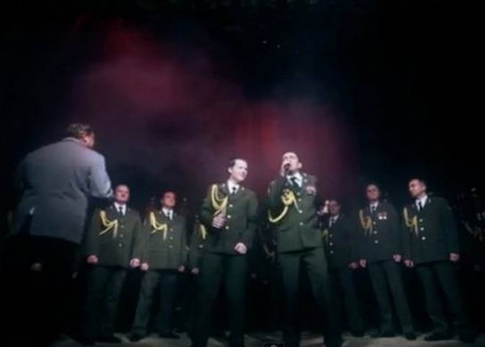 Članovi hora su prilikom proba za koncert u Kremlju 10. novembra odlučili da izvedu ovu poznatu numeru uz par vizuelnih efekata i plesnih poteza.
