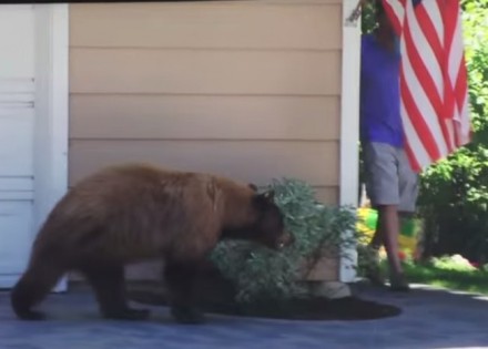 Na videu koji je snimio jedan prolaznik vidi se kako muškarac i medvjed hodaju pored zida kuće, ali sa suprotnih strana. Kada se sretnu i ugledaju jedan drugog…prva reakcija je “Bježiii”. Definitivno su i jedan i drugi bili predstavljeni.