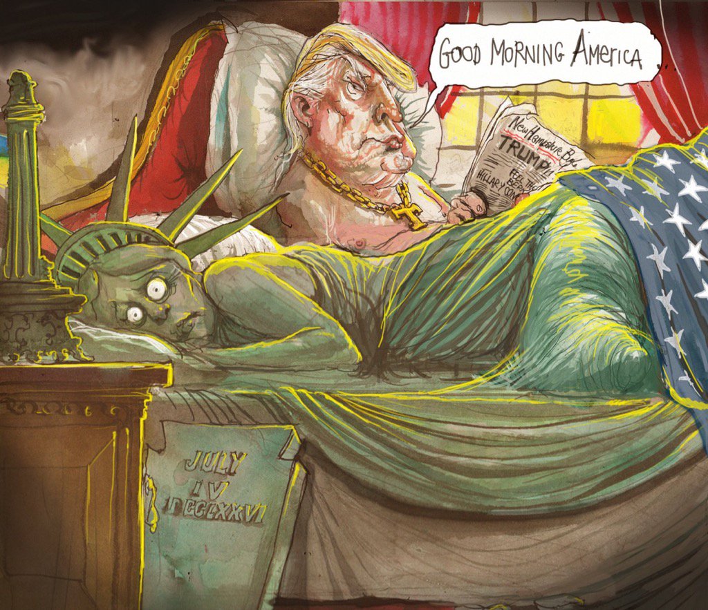Pobjeda republikanskog kandidata Donalda Trampa na izborima u SAD zapalila je društvene mreže, a svoj doprinos dali su i karikaturisti.