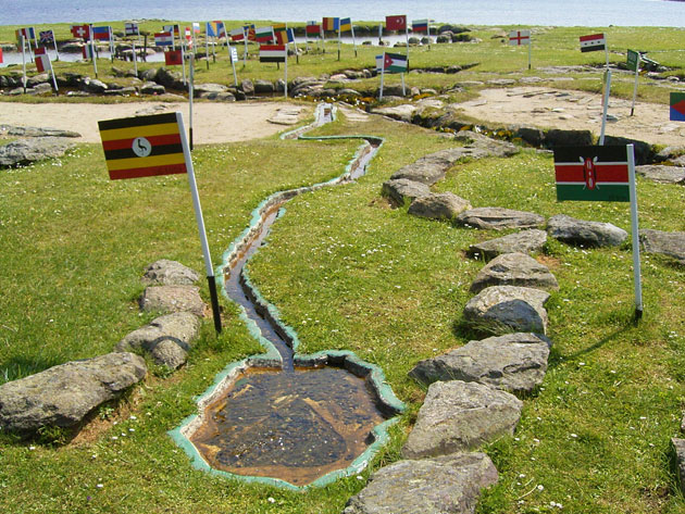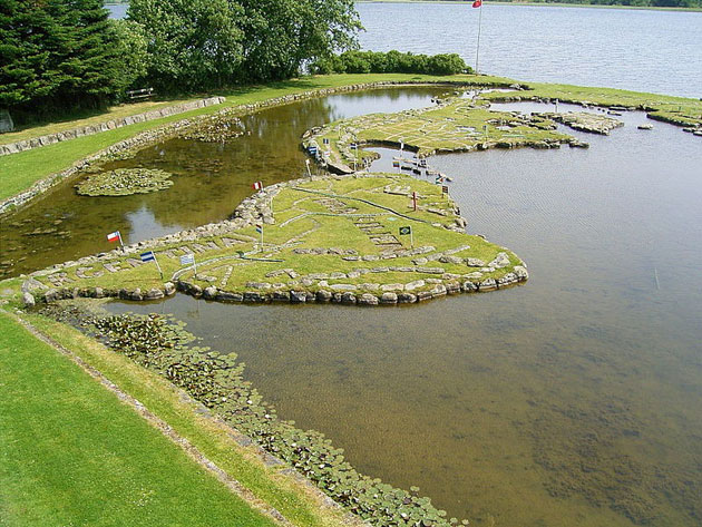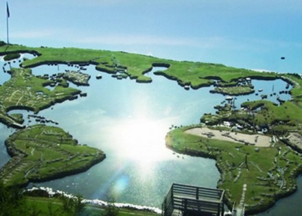 Ljubitelj geografije, Poulsen je odlučio da na jezeru napravi poluostrvo u obliku karte svijeta. Tom prilikom je koristio samo nekoliko jednostavnih alata i jako mnogo genijalnosti – neka od kamenja je sam prebacivao s jedne lokacije na drugu, a bila su teška i više od jedne tone.