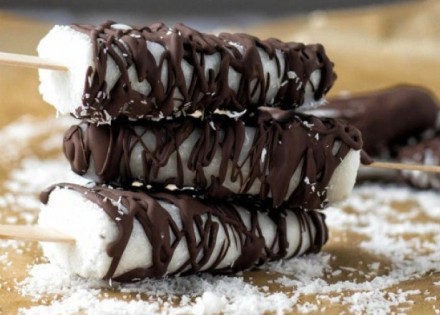 Nakon vađenja iz hladnjaka i kalupa, preko sladoleda pospite otopljenu čokoladu.