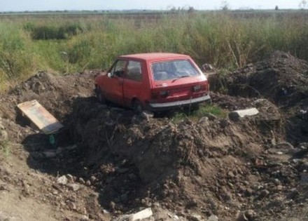 Oko “jugića” je iskopao jarak dubok metar i po, pa nespretni lopovi sada nemaju šansu da povrate svoje vozilo.