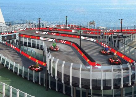 Putnici najnovijeg kruzera kompanije Norwegian Cruise Line moći će da uživaju u vožnji kartinga tokom krstarenja. Karting staza nalazi se na najvišoj palubi a napravljena je u saradnji sa Ferrarijem.