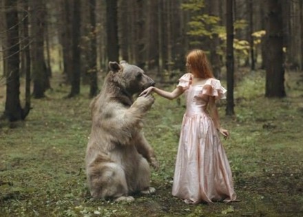Iako naizgled opasne, ove fotografije načinjene su uz pomoć profesionalnih trenera životinja. Medvjed, koji za mnoge predstavlja simbol primalne snage i instinkta, predstavlja upečatljiv kontrast, pogotovo zato što se nalazi pored elegantne princeze.