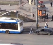 Nakon što ga neko vrijeme nisu uspjeli pokrenuti, dva mladića su odlučila da svoj automobil zakače za trolejbus na jednoj stanici u Sankt Peterburgu.