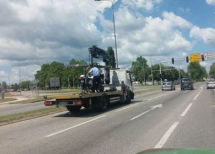 Fotografija, koju je napravio jedan od vozača, koji je sasvim slučajno vidio ovu smiješnu situaciju, prvo pokazuje da pauk nikako nije prilagođen prevozu motocikla, ali i da se radnik Parking službe morao voziti zajedno sa motorom u prikolici pauka.