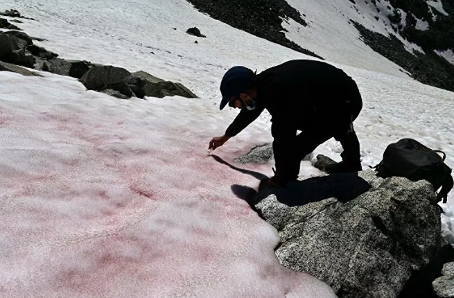 VIDEO: In a first for Italy, pink snow is observed on parts of the Presena glacier, in the north of the country. The phenomenon is caused by algae that develops when snow melts, simultaneously colouring the ice a darker colour pic.twitter.com/Qkche7rXT2