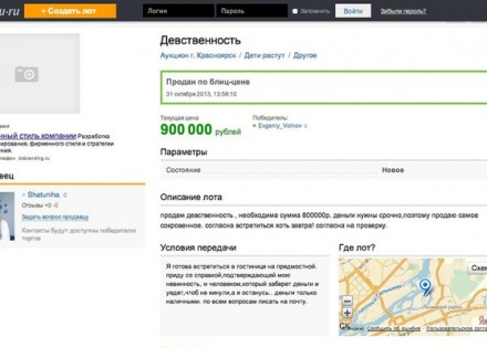 Aukcija je objavljena prije dva dana na sajtu 24au.ru – i to u kategoriji u kojoj piše opis “odrasla djeca”.