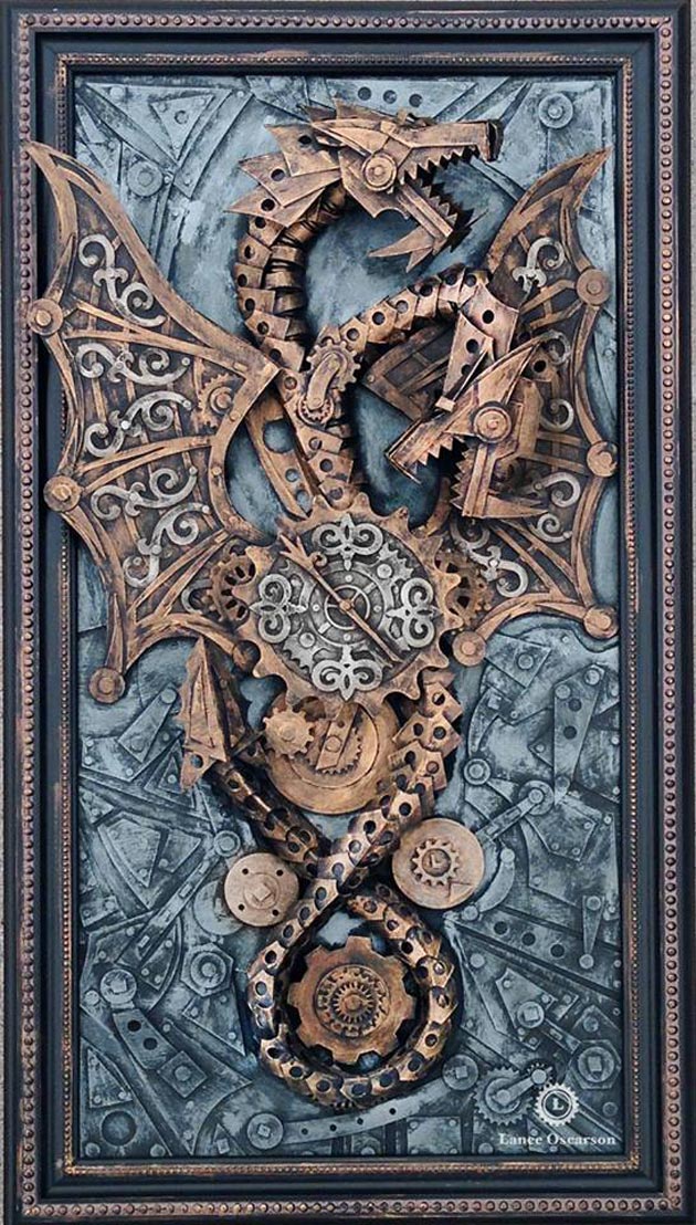 Sa petnaest godina iskustva na polju oglašavanja i deset godina provedenih radeći sa kožom namijenjenom za motocikle, umjetnik Lance Oscarson trenutno provodi slobodno vrijeme izrađujući maštovite steampunk / dieselpunk skulpture od kartona.