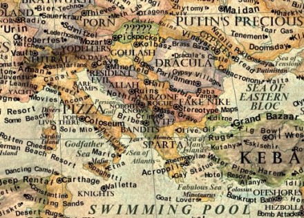 Umjetnik Martin Vargic stvorio je mapu svijeta koja prikazuje preko 1.800 predrasuda o zemljama, regionima, morima i okeanima prikazujući apsurd toga kako čovječanstvo bez prevelikih problema može da otpiše određenedijelove naše planete.