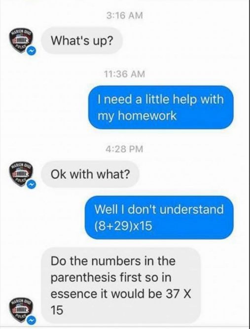 Policajci su se znali kroz karijeru susresti s mnogim izazovima, ali policijski službenik iz američke države Ohio, vjerujemo nije ni slutio da će putem Facebooka riješavati domaći zadatak iz matematike, jednoj 10-godišnjoj učenici.