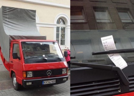 Skulptura u obliku savijenog automobila nije mogla da prođe “neopaženo” ni saobraćajnom policajcu, koji je napisao kaznu za nepropisno parkiranje.