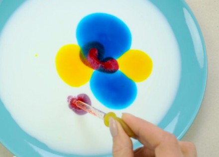 Sve što vam je potrebno je mlijeko, deterdžent za suđe i boja. Naspite mlijeko u zdjelu, dodajte nekoliko kapi boje. Nakon nekoliko sekundi dodajte i deterdžent za suđe, a efekat će vas iznenaditi! Pogledajte video: