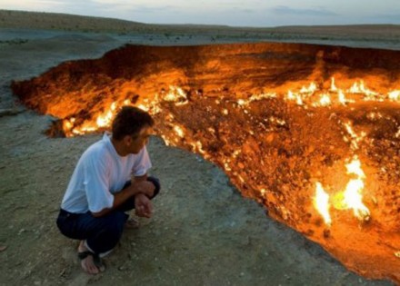 Krater koji se zvanično zove Darvaza gori već više od 40 godina nakon nezgode koju su izazvali sovjetski naučnici koji su željeli tu da spale višek gasa. Njegova dubina je oko 30 metara, a temperatura prelazi preko 1.000 stepeni Celzijusa.