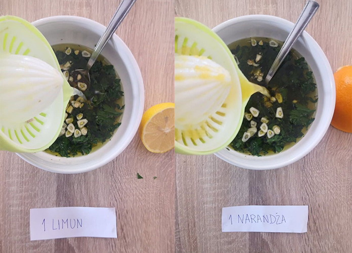 Na kraju dodati sok od iscijeđenog limuna i narandže.