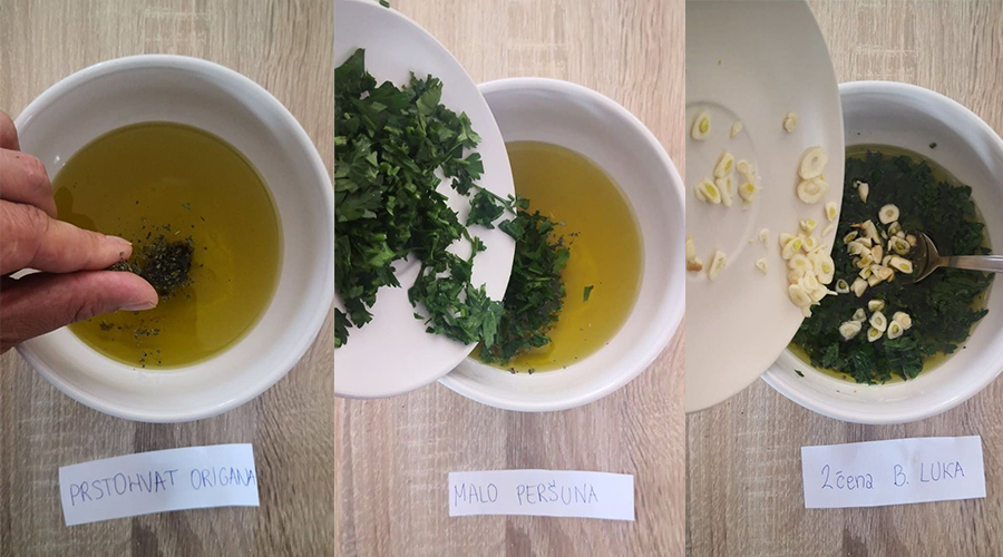 Potom dodati i origano, peršun i bijeli luk.