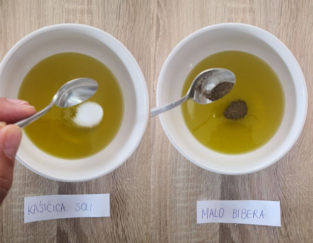 Pripremite marinadu od navedenih sastojaka, tako što u ulje dodate so i biber.