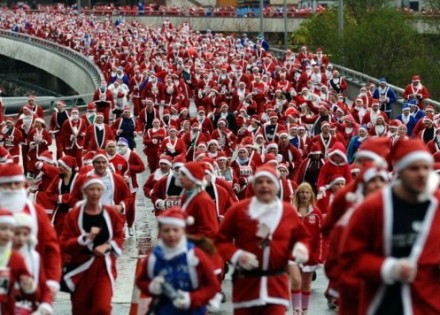 Oko 10.000 ljudi maskiranih u Djeda Mraza učestvovalo je danas u trci dugoj pet kilometara kroz centar Liverpula.