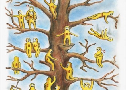 Svaka figura sa slike je u drugačijem raspoloženju i poziciji na drvetu, a potrebno je da odaberete dvije.