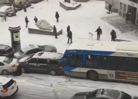 Zaleđena cesta u Montrealu uzrokovala je u ponedjeljak sudar više vozila, koja su se zapravo naslagala na jednu ogromnu hrpu.