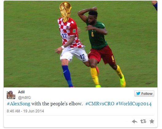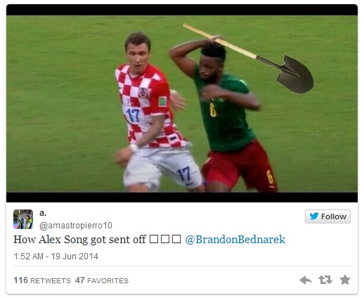 Nakon što smo imali prilike vidjeti izuzetno grub prekršaj Kamerunca Alexa Songa nad Marijem Mandžukićem zbog kojeg je Kamerunac kažnjen crvenim kartonom, bilo je samo pitanje vremena kada će agresivni igrač dobiti i poseban tretman na društvenim mrežama.