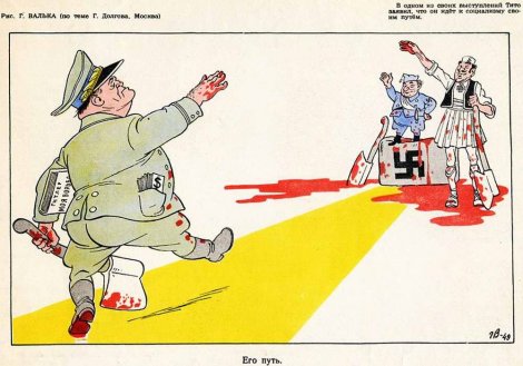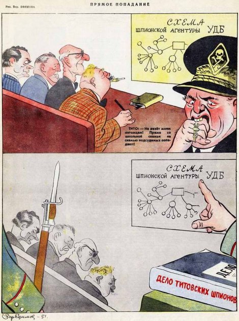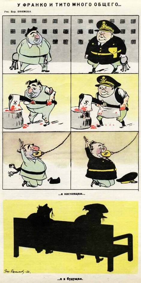 U međuvremenu, sovjetska štampa se posprdno odnosila prema jugoslovenskom vođi, o čemu svjedoče ove živopisne karikature: