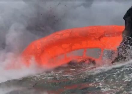 Snaga majke prirode rijetko se pokazuje na ovako spektakularan način – užarena tečna lava se velikom brzinom “uliva” u okean na Havajima.