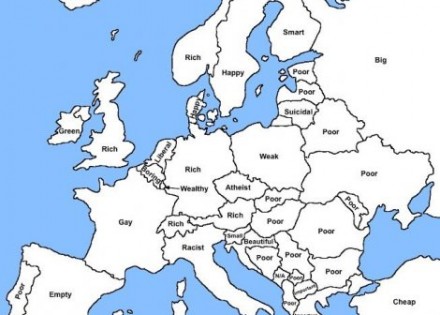 Na ovaj način Rendal je uspio da napravi zanimljivu mapu Evrope sačinjenu od uvriježenih mišljenja o stanju njenih država, pa su se tako ljudi pitali zašto je Njemačka toliko bogata, a Francuska “gej”, dok su se drugi pitali zbog čega je Švedska srećna, a Hrvatska lijepa…