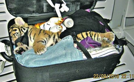Među plišanim životinjama u koferu jedne žene, na aerodromu u Bangkoku pronađeno je i pravo mladunče tigra. Nadala se da će ga prodati za 3.000 evra.