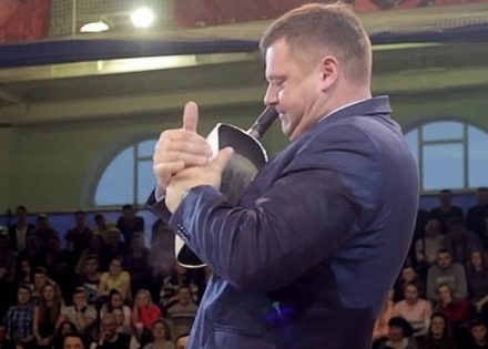 Osmostruki vlasnik titule Ginisovog rekorda, Aleksandar Muromski još jednom je zadivio svijet svojom nevjerovatnom snagom. Na jednoj košarkaškoj utakmici u Orelu (grad koji se nalazi 360 kilometara od Moskve) Muromski je uzeo jedan tiganj i za kratak period ga presavio u “burito”. Muromski je inače član grupe Bogatirs.