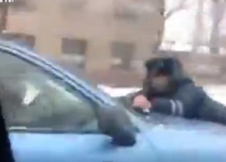 Na internetu je objavljen snimak policajca kojeg taksista vozi na haubi.