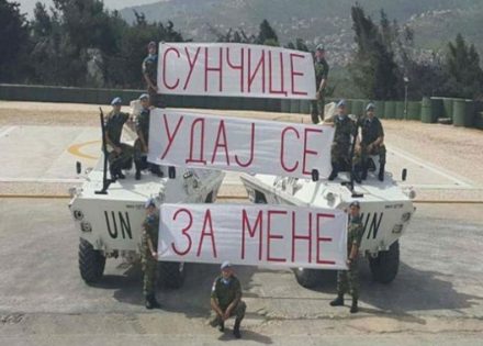 Aleksandar Filipović (31), pripadnik Vojske Srbije, koji je trenutno sa kolegama u mirovnoj misiji u Libanu, zaprosio je svoju dugogodišnju djevojku, Sunčicu Ivanović (33) porukom ispisanom na tri velika panoa: “Sunčice, udaj se za mene”.