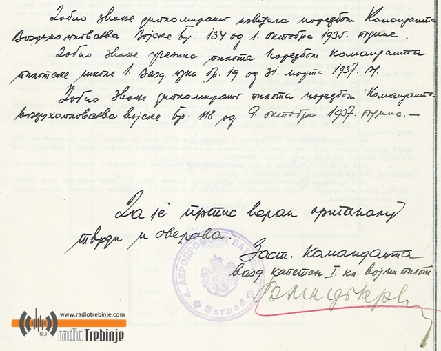 Na 76. godišnjicu napada Hitlerove Njemačke na Kraljevinu Jugoslaviju (Aprilski rat) posvetili smo ovu priču jednom Trebinjcu, pilotu, i svim vazduhoplovcima koji su hrabro branili svoju otadžbinu – Kraljevinu Jugoslaviju.