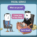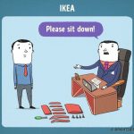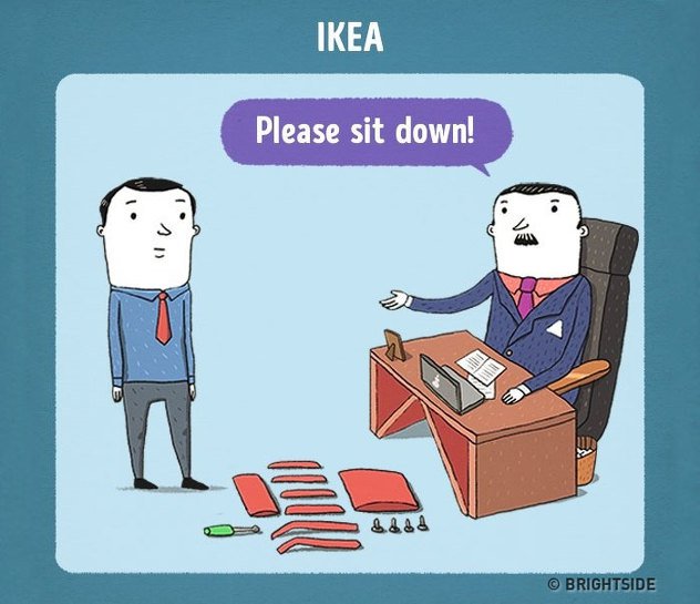 Za razgovor u IKEA-i, slavnom švedskom proizvođaču namještaja, ilustracija pokazuje da uposlenik prvo mora sastaviti stolicu pa sjesti na nju kako bi razgovarao o poslu, dok u pošti dobija posao ako “zna kako gubiti stvari”.