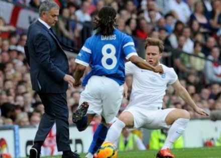 Mourinho se pobrinuo za najzanimljiviji trenutak utakmice. Usred akcije suparničke ekipe je ušao na teren i startao na engleskog pjevača Ollyja Mursa, koji je završio na travi. Mourinho se brže-bolje uz vragolasti osmijeh vratio na klupu, dok se na licu pjevača prvo vidjelo zaprepaštenje, ali nakon toga i osmijeh…